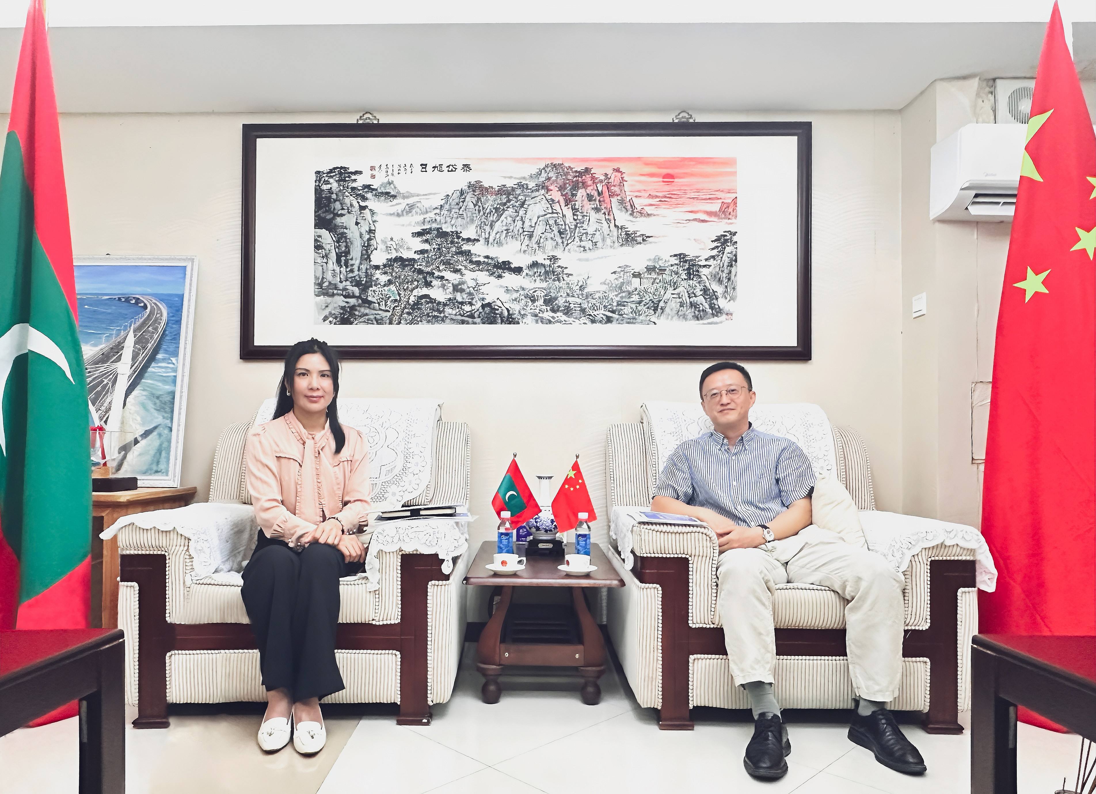 10月15日,公司董事长孔庆云拜访中国驻马尔代夫大使孔宪华、经商处参赞张旭,公司总经理助理吴凯龙、马尔代夫团队成员随行参加。