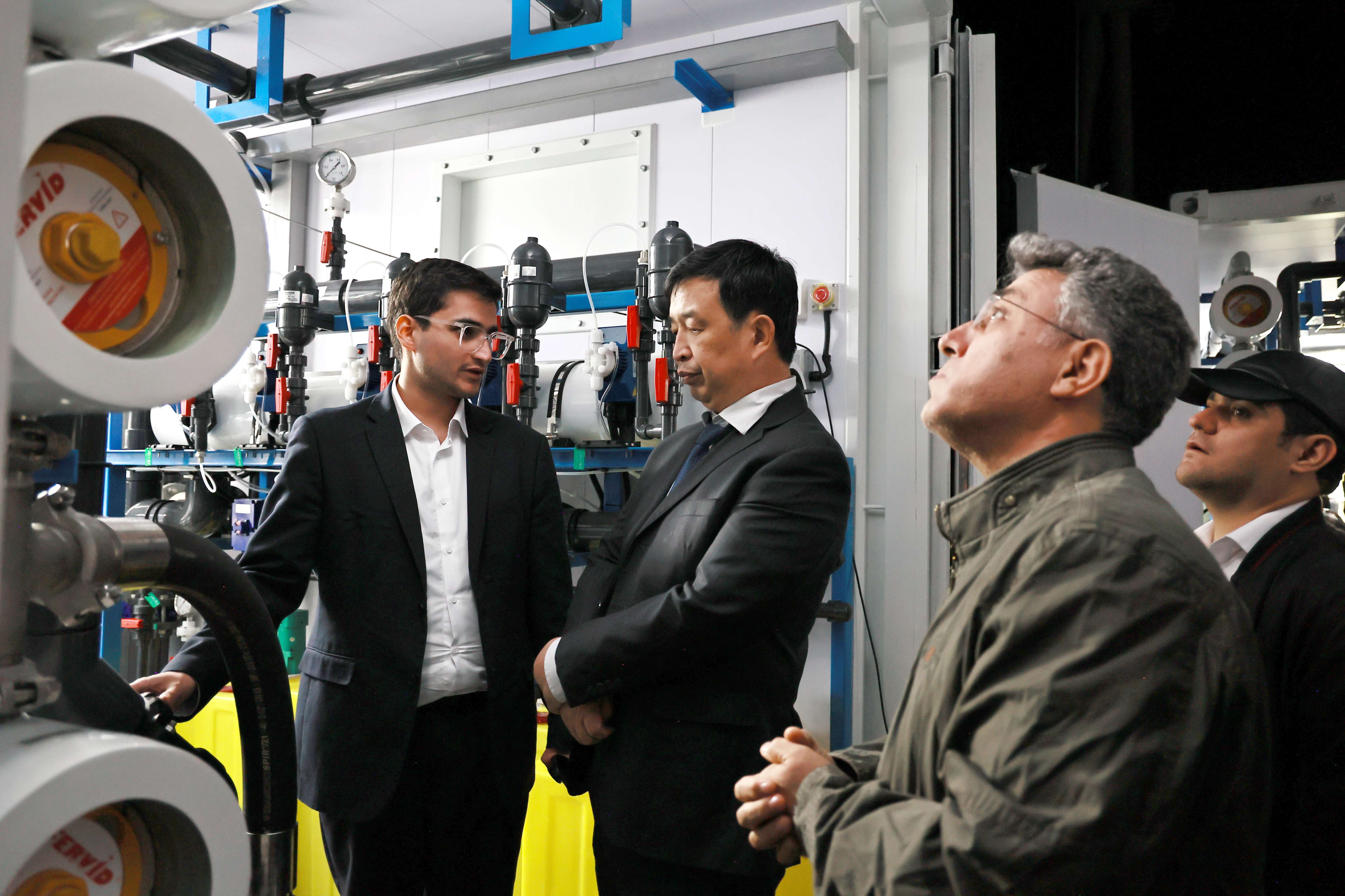 代表团详细了解了公司的技术创新、成果转化应用及项目运营模式等相关内容,重点围绕海水预处理工艺、关键部件选型等技术问题进行了深入交流,并对公司产品制造工艺和质量给予了称赞。此外,代表团还热切期望公司能为伊朗正在运营的海水淡化项目提供专业的技术支持。