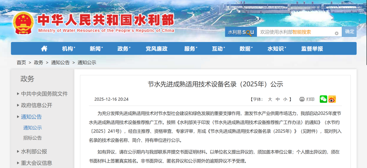 该名录是国家水利部组织编制的重要节水名录,旨在引导行业从“被动节水”向“主动创效”转型,推动水资源高效利用及“双碳”目标实现。名录收录的技术设备均经过严格筛选与评估,既需满足节水效果显著、技术成熟稳定的基本要求,又要具备广泛的适用性和良好的市场推广前景。