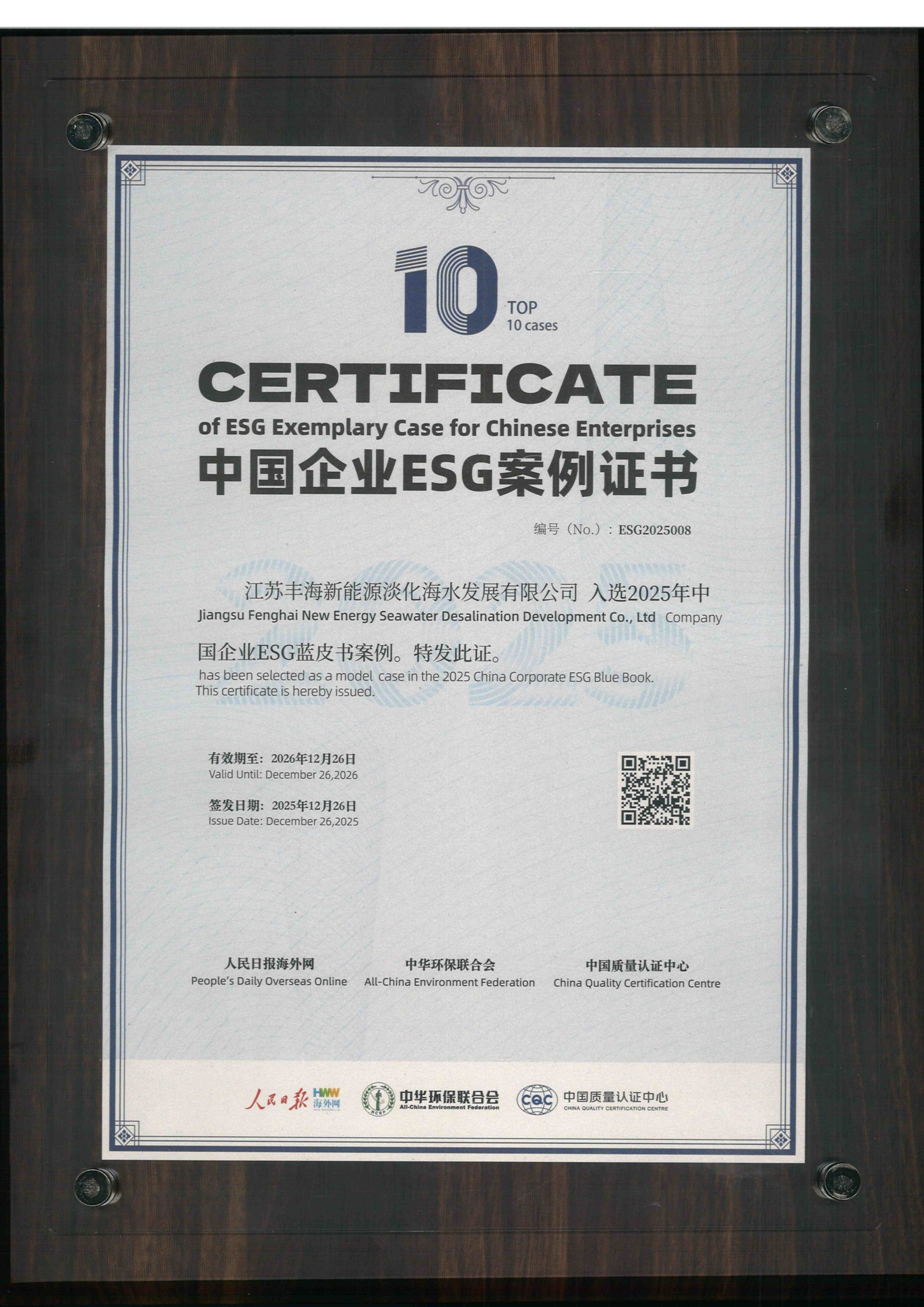 12月26日,第三届中国品牌形象海外传播论坛暨2025中国企业ESG蓝皮书发布会在北京人民日报社本部举行,丰海公司申报的“向绿而行,润泽四方”成功入选2025中国企业ESG蓝皮书案例,获主办方联合颁发认证证书。